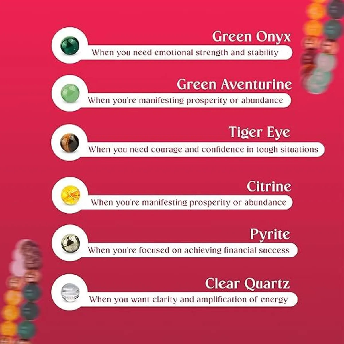 BENIFITS: If you are looking to attract financial wealth and abundance, wear the money magnet bracelet. Pyrite is a stone that attracts money, helps one to curb unnecessary expenses, and inspires saving. The idea behind doing this is that the magnet attracts the iron in your blood, and this in turn boosts your circulation.